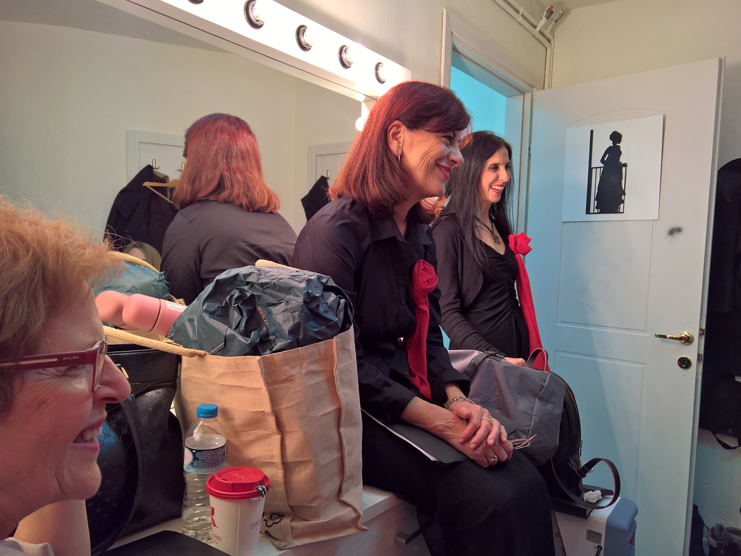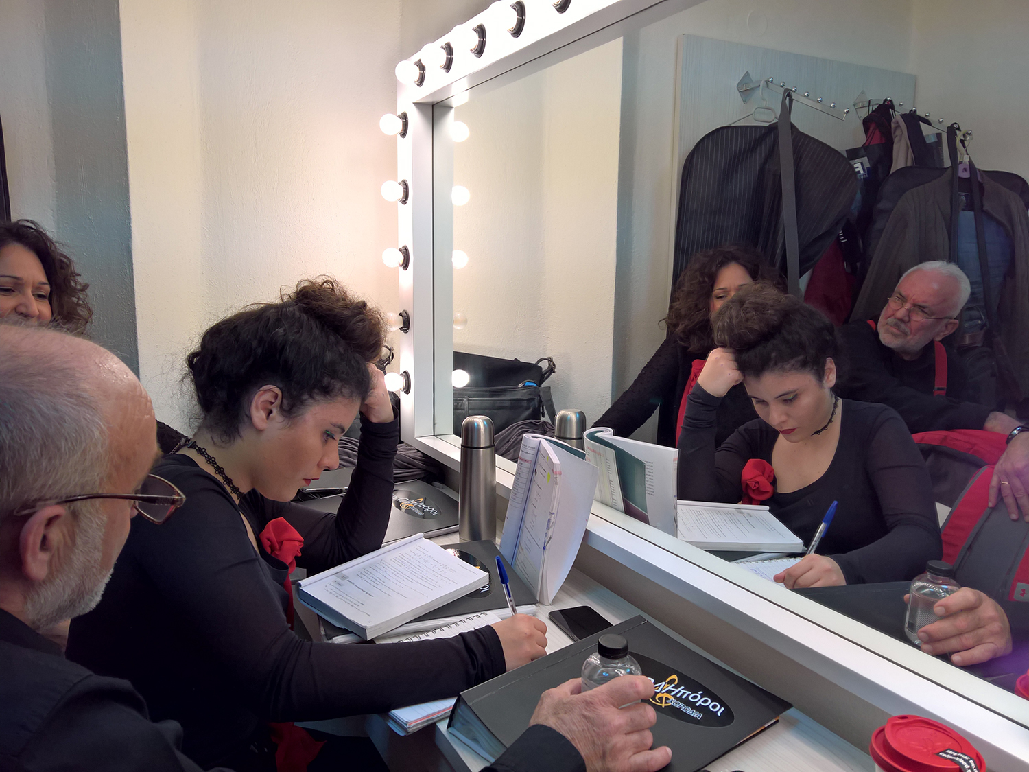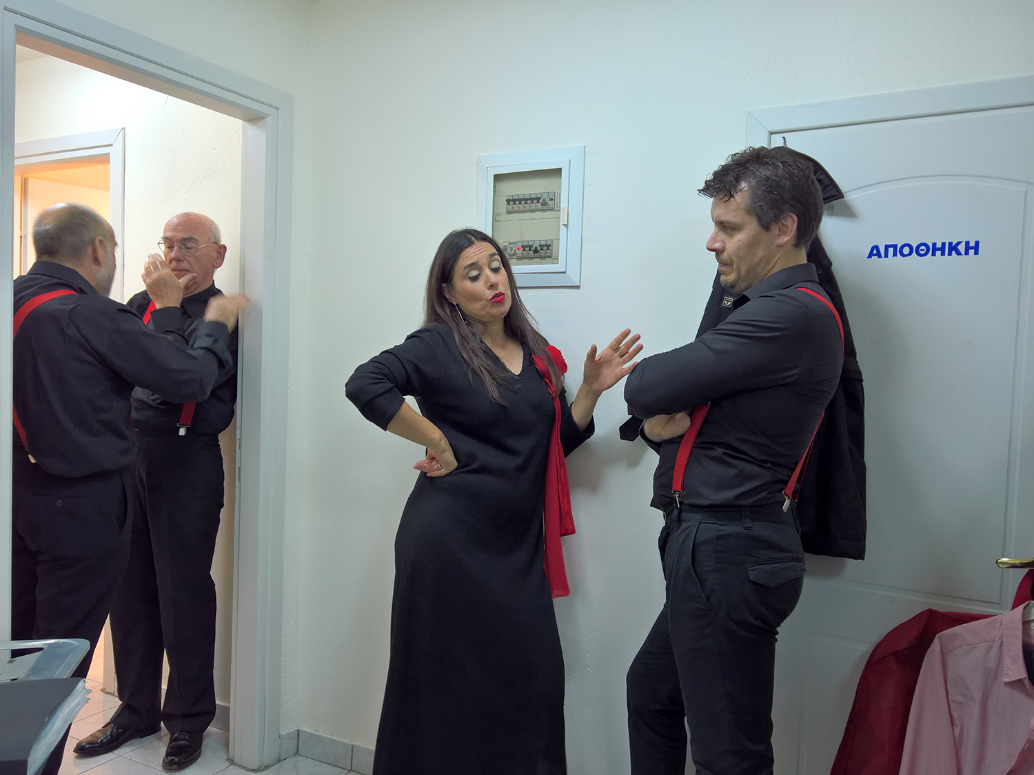 Πέρα από την παράσταση, αυτή τη φορά εξασφαλίσαμε πλούσιο υλικό από τα παρασκήνια. Η ώρα αναμονής για την επάνοδο στη σκηνή ήταν μεγάλη για τους ΣυνΩΔΗπόρους και χώρος για να παρακολουθήσουν το σολιστικό μέρος του Βασίλη δεν υπήρχε! Η μόνη λύση για τους ΣυνΩΔΗπόρους ήταν τα καμαρίνια του αμφιθεάτρου, οι διάδρομοι και οι σκάλες!