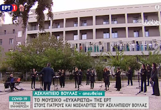 Μετά τις μουσικές παραστάσεις που δόθηκαν πρόσφατα στα νοσοκομεία Ευαγγελισμός και Αττικόν, σειρά είχε το Ασκληπιείο Βούλας. Σήμερα, η Χορωδία της ΕΡΤ, παρουσίασε ένα υπέροχο μουσικό δρώμενο στον υπαίθριο χώρο του Ασκληπιείου.