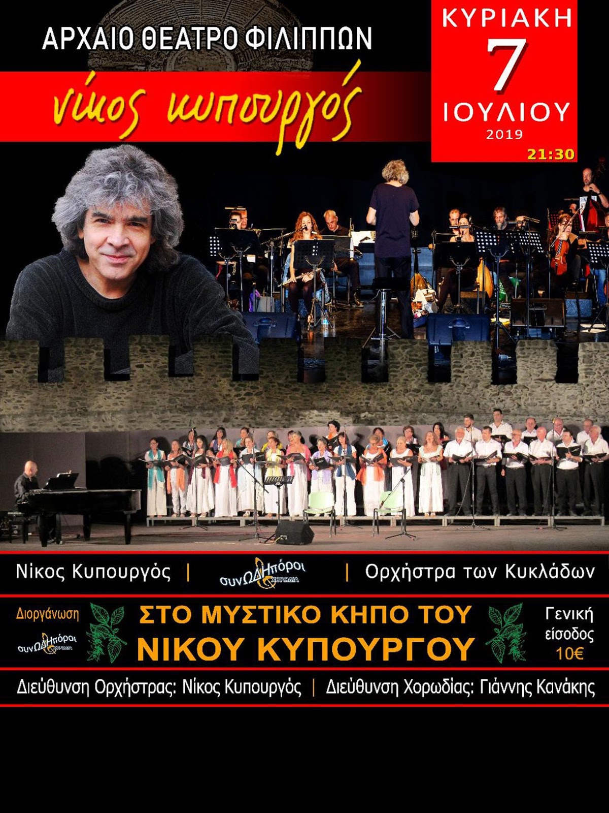 Έτσι, μετά το ερώτημα για το αν θα πραγματοποιηθεί ή όχι το Kavala AirSea Show, το ίδιο ερώτημα τίθεται και για την έναρξη του Φεστιβάλ Φιλίππων, την Κυριακή 7 Ιουλίου 2019 στις 21:30 στο αρχαίο θέατρο Φιλίππων, με τη μεγάλη συναυλία του Νίκου Κυπουργού, των ΣυνΩΔΗπόρων και της Ορχήστρας των Κυκλάδων η οποία θα έρθει στην Καβάλα με 65 μέλη.