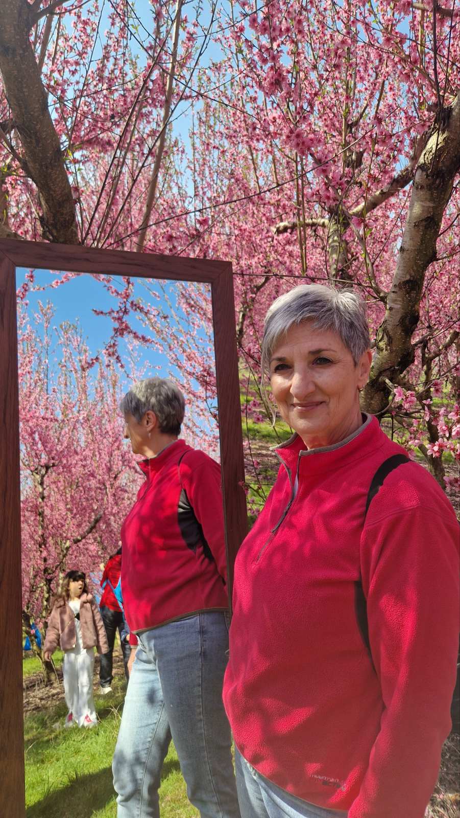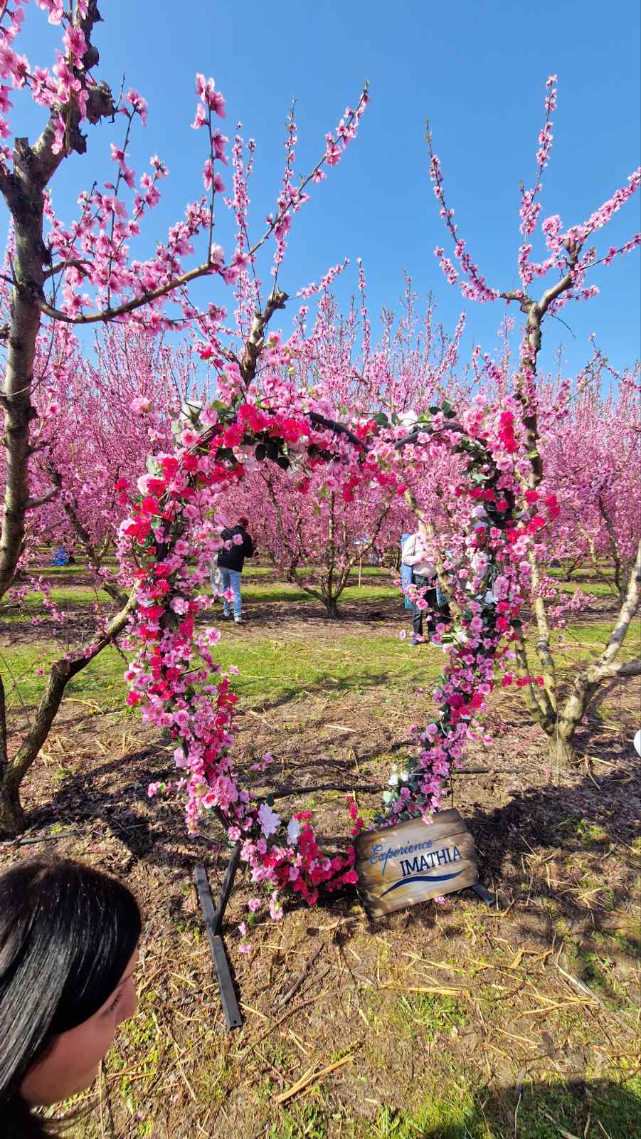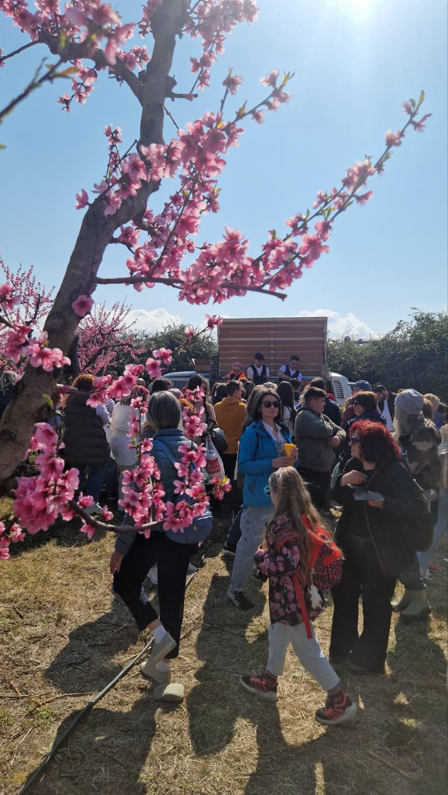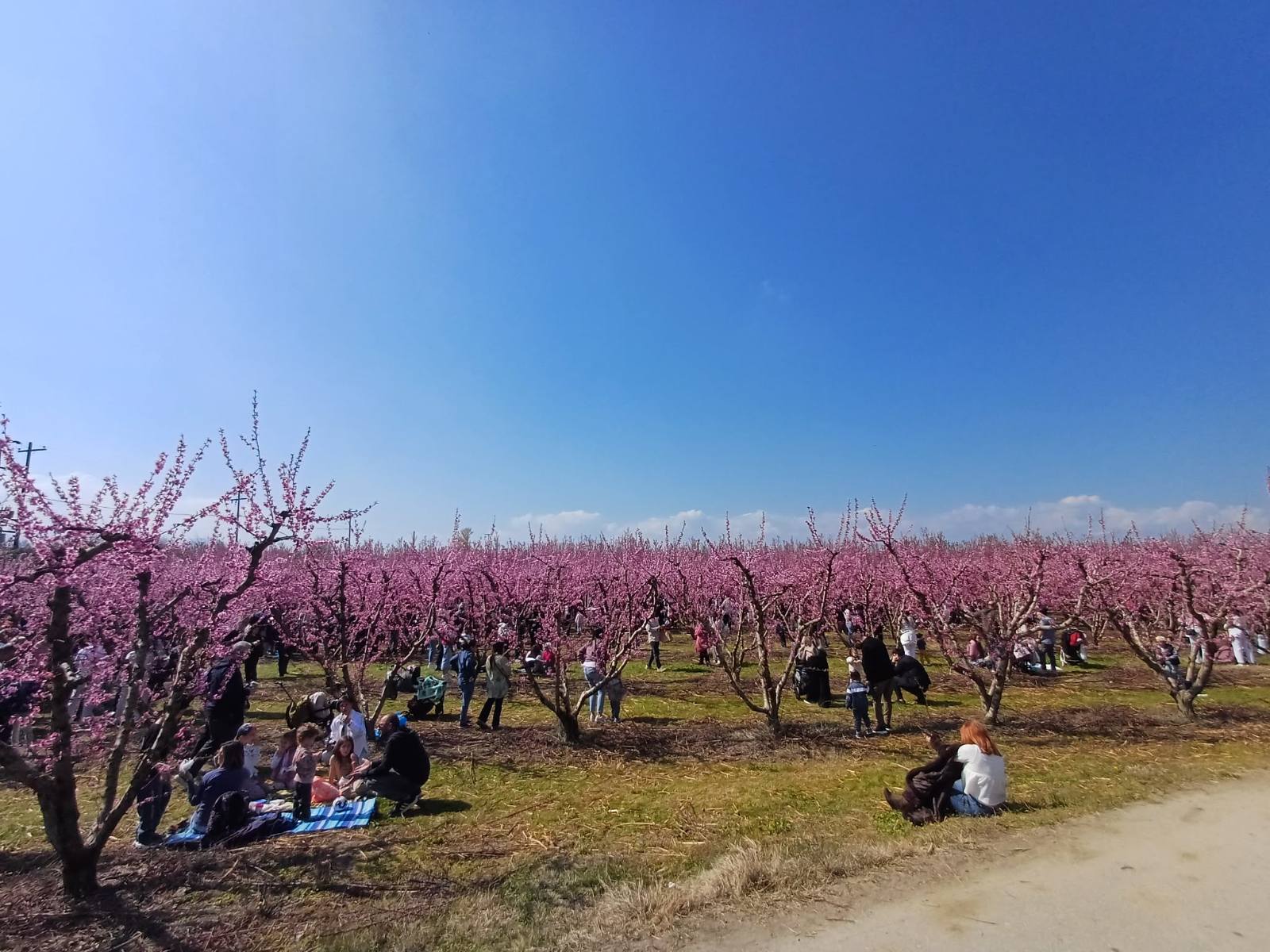 Η περιήγησή μας ξεκίνησε κάτω από τον λαμπερό ήλιο του Μαρτίου, με τον απέραντο ροζ ορίζοντα να αποτελεί το ιδανικό σκηνικό για τις φωτογραφίες μας. Περπατήσαμε ανάμεσα στα ανθισμένα δέντρα, θαυμάσαμε την ομορφιά της φύσης και αφεθήκαμε στη μαγεία του τοπίου που θυμίζει πίνακα ζωγραφικής.