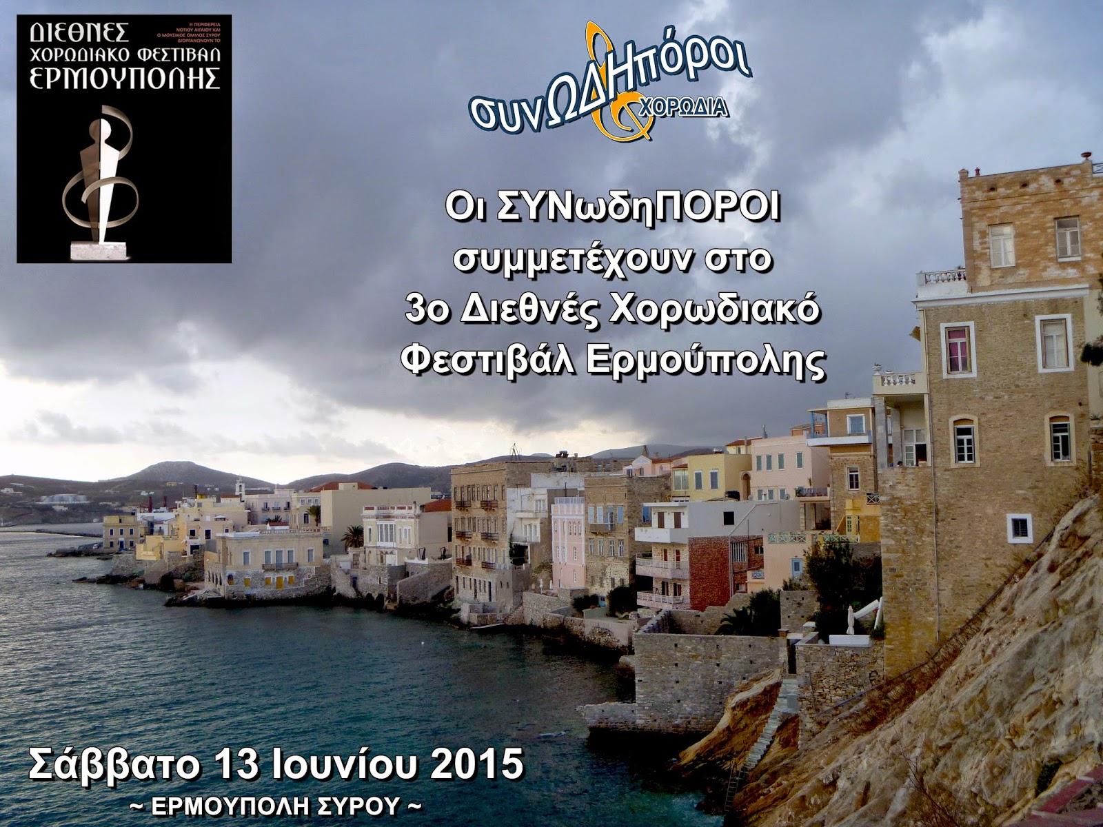 Η πρόσκληση ήρθε από τους διοργανωτές του Φεστιβάλ (Περιφέρεια Νοτίου Αιγαίου & Μουσικός Όμιλος Σύρου) και δεν μπορούμε να κρύψουμε το γεγονός ότι η πρόσκληση σε ένα τόσο σημαντικό Διεθνές μουσικό δρώμενο μας τιμά απεριόριστα! Η χορωδία υπό τη διεύθυνση του Γιάννη Κανάκη, έχει ανοίξει τους ορίζοντές της και δέχεται *προσκλήσεις για μεγάλες μουσικές διοργανώσεις εντός κι εκτός Ελλάδας.