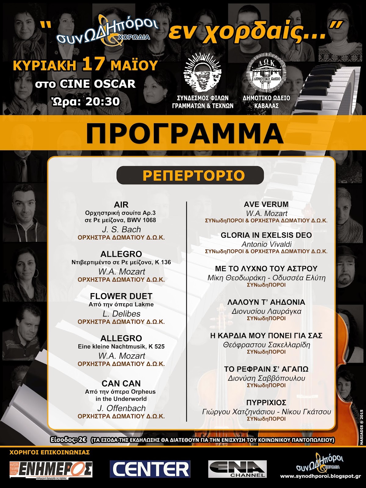 Αξίζει να σημειωθεί ότι η εκδήλωση θα βιντεοσκοπηθεί από το συνεργείο του φωτογράφου Μάκη Παυλίδη, αλλά και από το synodhporoi.blogspot.gr, μέσω του οποίου και φέτος θα έχετε την δυνατότητα να δείτε & να ακούσετε όλα τα κομμάτια της παράστασης σε ποιότητα HD και ήχο STEREO DOLBY DIGITAL, από την επόμενη κιόλας εβδομάδα!