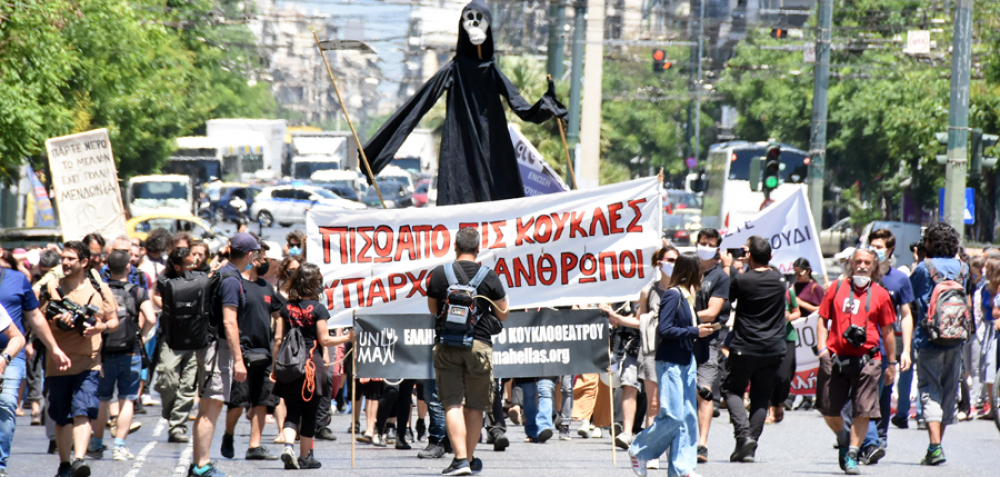 Πορεία διαμαρτυρίας πραγματοποίησαν το μεσημέρι καλλιτέχνες στο κέντρο της Αθήνας και με αφορμή την Παγκόσμια Ημέρα Πολιτισμού, εξέφρασαν την αγωνία τους για την επιβίωσή τους την επόμενη ημέρα της πανδημίας κορωνοϊού.