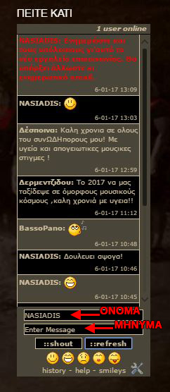 Προσπαθώντας να κάνουμε το Blog των ΣυνΩΔΗπόρων ακόμη πιο ελκυστικό & χρήσιμο για τους χορωδούς και τους επισκέπτες, προσθέσαμε μια σύγχρονη λειτουργία που στα Αγγλικά λέγεται SHOUTBOX.