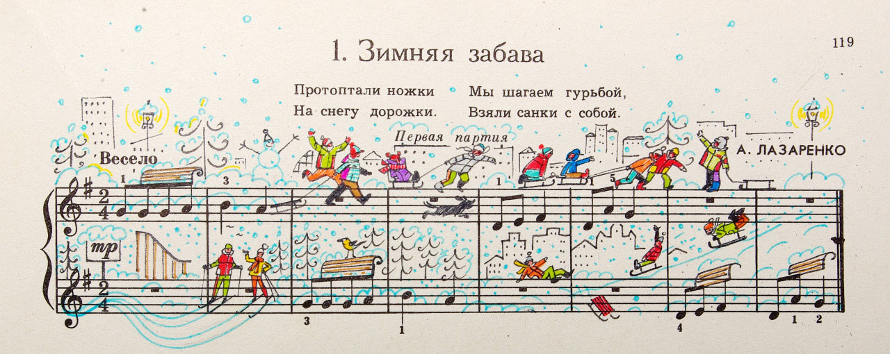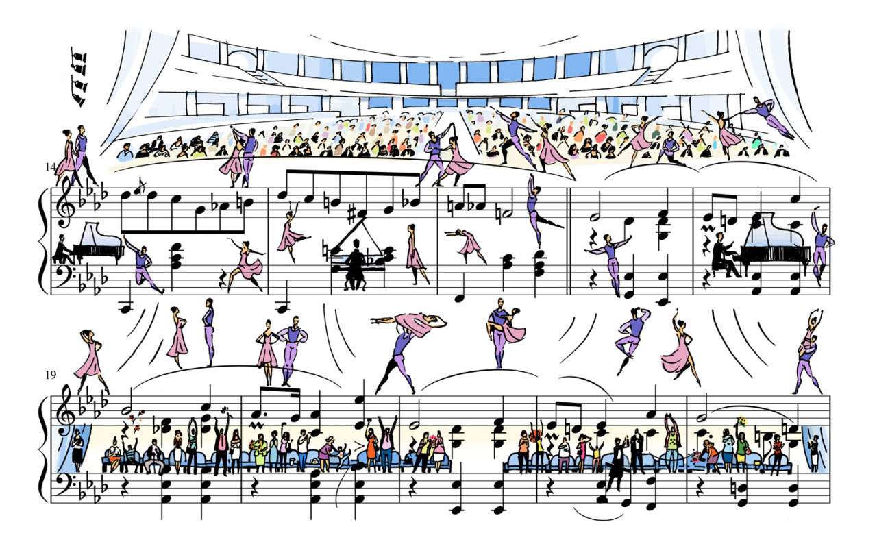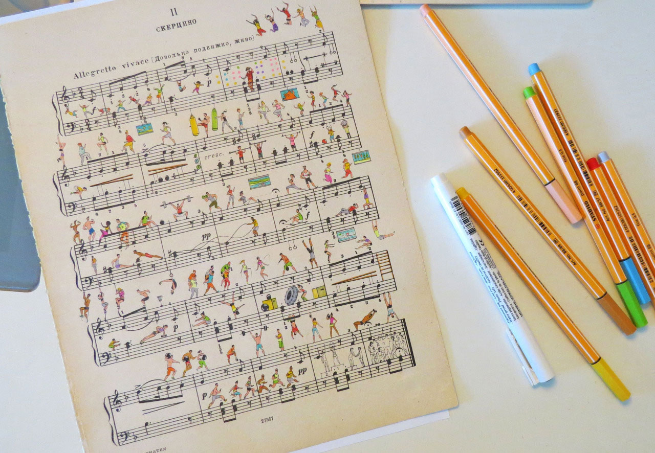 Η Ρωσίδα εικονογράφος Lena Erlich, ωστόσο, πάει ένα βήμα παραπέρα, βλέποντας τις παρτιτούρες ως ένα τοπίο στο οποίο μπορεί να ζωγραφίζει πολύχρωμες ιστορίες με ένα πολύ προσωπικό στιλ αποτίοντας φόρο τιμής στις παλιές καλές εικονογραφήσεις. Η ίδια η Erlich ζει σε ένα χωριό κοντά στο Novosibirsk, την τρίτη μεγαλύτερη πόλη της Ρωσίας που βρίσκεται ακριβώς στην καρδιά της Σιβηρίας. Εκεί διευθύνει το studio σχεδιασμού “People Too” μαζί με τον εικονογράφο Alexey Liapunov.