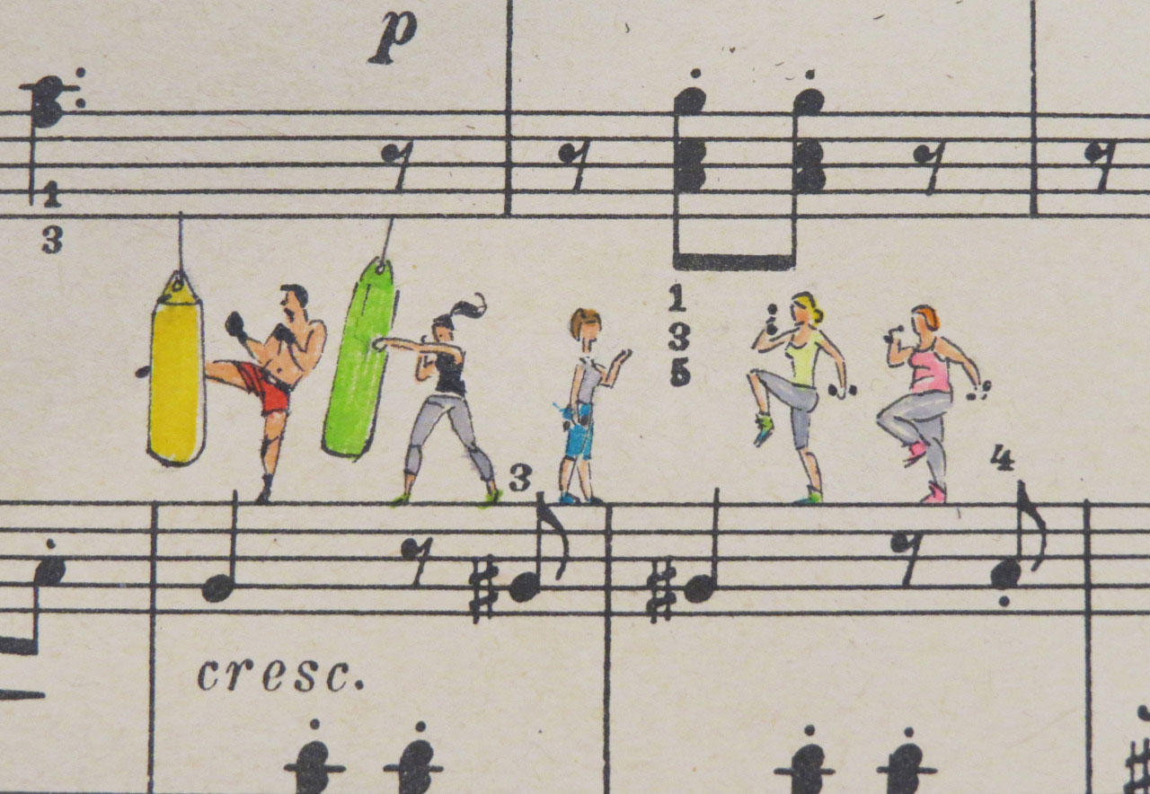 Όμορφα ζωγραφισμένα και χρωματισμένα, αυτά τα μικροσκοπικά εικονογραφήματα είναι έργο ενός ταλαντούχου εικονογράφου, που μπορεί να αποτυπώσει τόπους, συναισθήματα και αναμνήσεις μέσα στον περιορισμένο χώρο μιας παρτιτούρας.