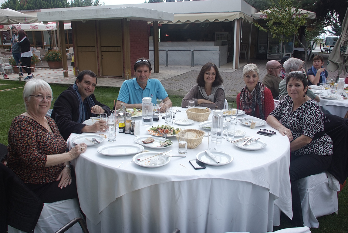 Στιγμή δεν άφησαν οι ΣυνΩΔΗπόροι τους Γάλλους χορωδούς από το Mercandour των νοτίων Άλπεων στο τριήμερο που βρέθηκαν στην πόλη μας. Η υπεύθυνη του σχήματος Δέσποινα Τσιμπεράκη μαζί με τα μέλη της επιτροπής Κατερίνα. Κολιάρμου , Κατερίνα Μπάτη, Ανατολή Καζαντζίδου και Μαρία Δερμεντζίδου άλλα και τους συγχορωδούς και φίλους της χορωδίας γαλλομαθείς Τασούλα Παπουλίδου, Μαρούλα Σαμαρίδου, Χρύσα Εμμανολούδη, Γιώργο Μυτιλήνη, φρόντισαν ώστε να απολαύσουν στο έπακρο την “ελληνική φιλοξενία” οι Γάλλοι φίλοι μας! Τους υποδέχθηκαν κατά την άφιξη τους στην πόλη μας, προσφέροντάς τους τοπικά προϊόντα χορηγημένα από βιοτεχνίες της πόλης μας (Βι.Ελ.Θα, Μπαμπατζίμ, Χρυσανθίδης) και διαφημιστικά τουριστικά φυλλάδια με φροντίδα της Δημωφέλειας.
